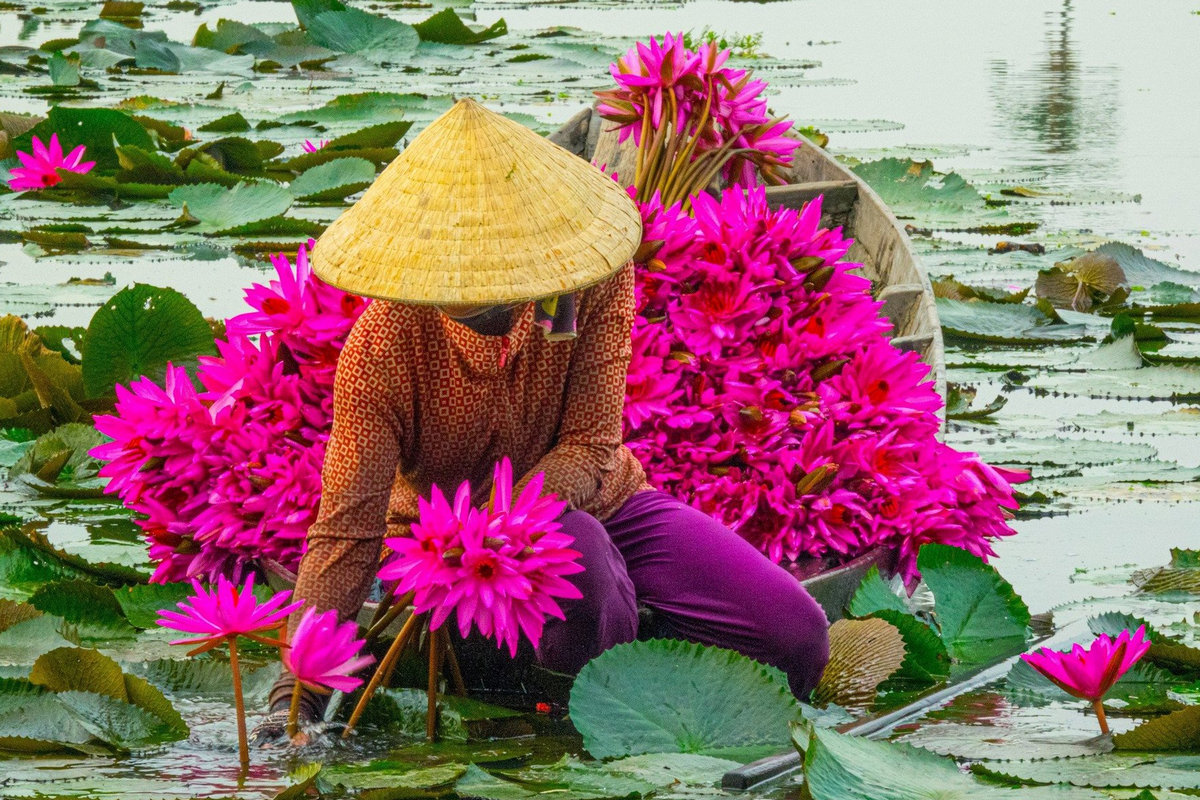 Каждую осень в дельте реки Меконг местные жители собирают водяные лилии.