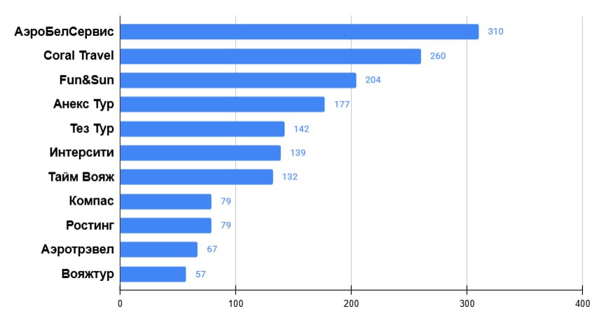Как всегда, рейтинги опираются на предпочтения сотрудничества белорусских турагентов с отечественными туроператорами.
