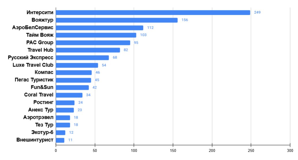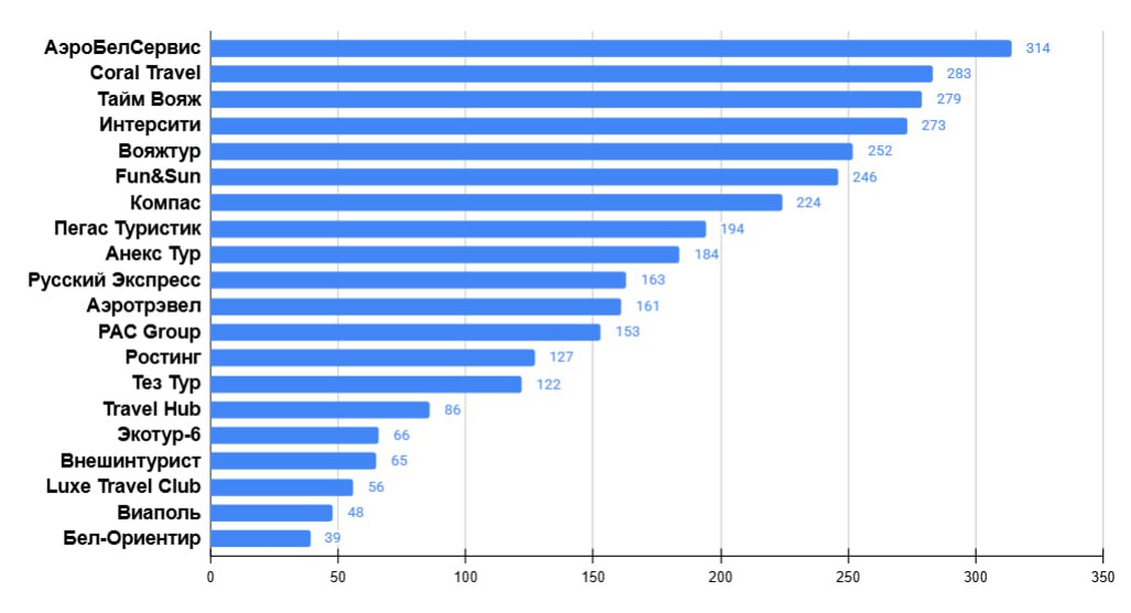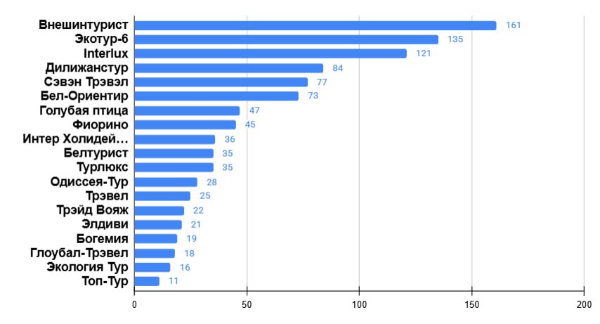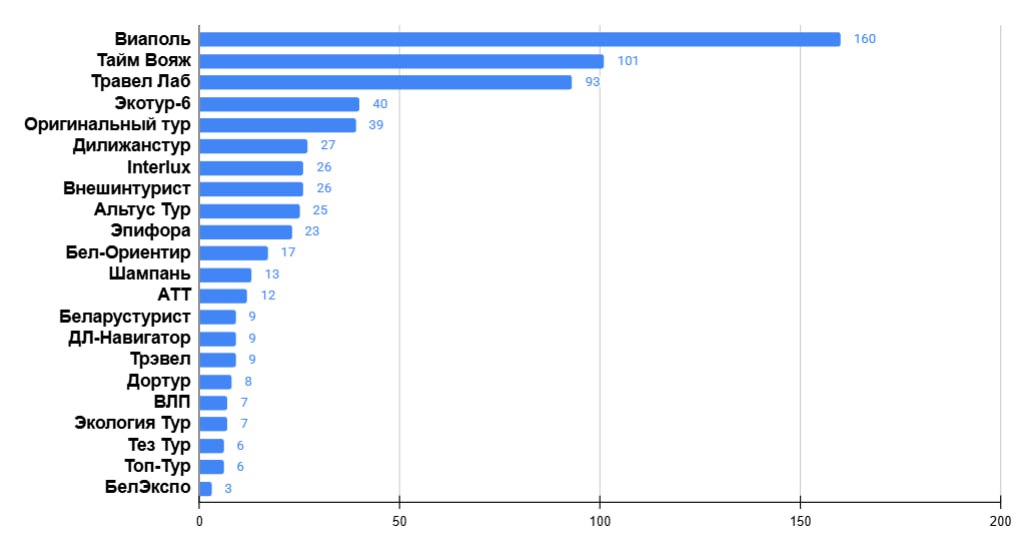 Пятерка лидеров расположилась следующим образом: «АнитаBy», «Экотур-6», «Альтус Тур», «Травел Лаб», «Тайм Вояж».